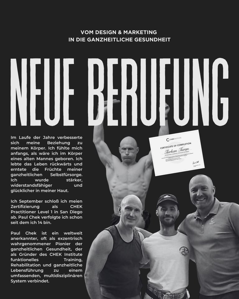 Meine eigene Heilungsreise führte mich schließlich zum CHEK Institute. Dort fand ich den wissenschaftlichen und ganzheitlichen Rahmen, der mir das System, die Sprache und die Werkzeuge gab, um meine Praxis zu formalisieren.